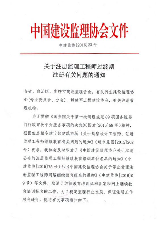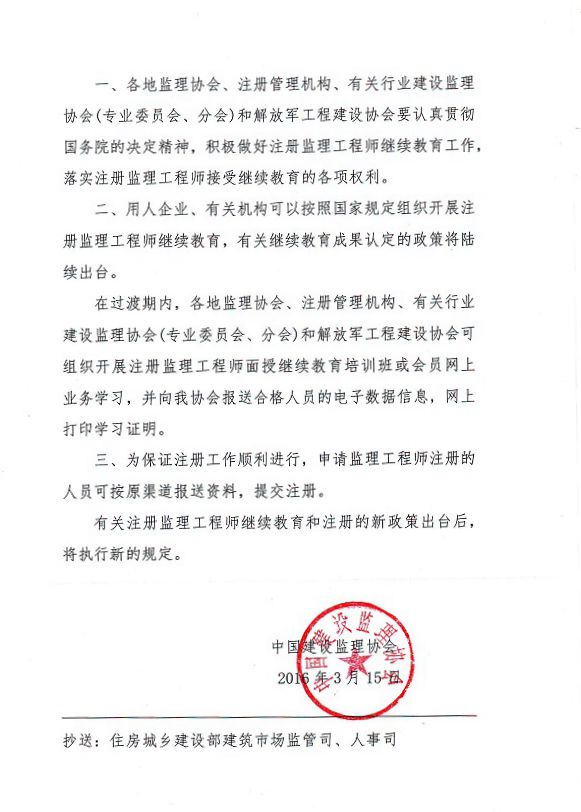 转发中国建设监理协会“关于注册监理工程师过