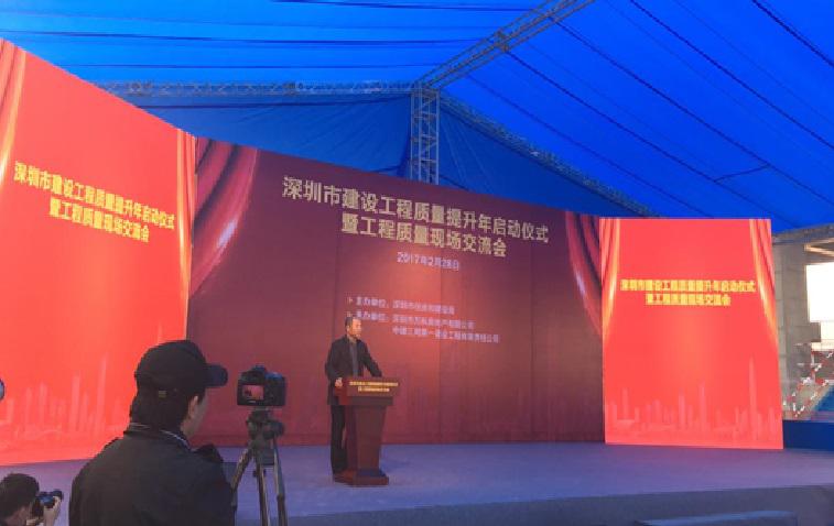 由深圳市住房和建设局主办的深圳市建设工程质量提升年启动仪式暨工程质量现场交流会于2017年2月28日在深圳华西建设工程管理有限FH在线平台(中国)官网监理的万科云城项目隆重举行。市发改委、市规土委、市水务局等市直有关部门负责人,各区政府、新区管委会负责人,市、区建设主管部门负责人,部分建设、勘察、设计、施工、监理企业及施工图审查、检测机构负责人,相关建设行业协会负责人等参加启动仪式。来自市、区质量监督机构及建设、施工、监理等企业的代表约800余人参加了观摩活动。