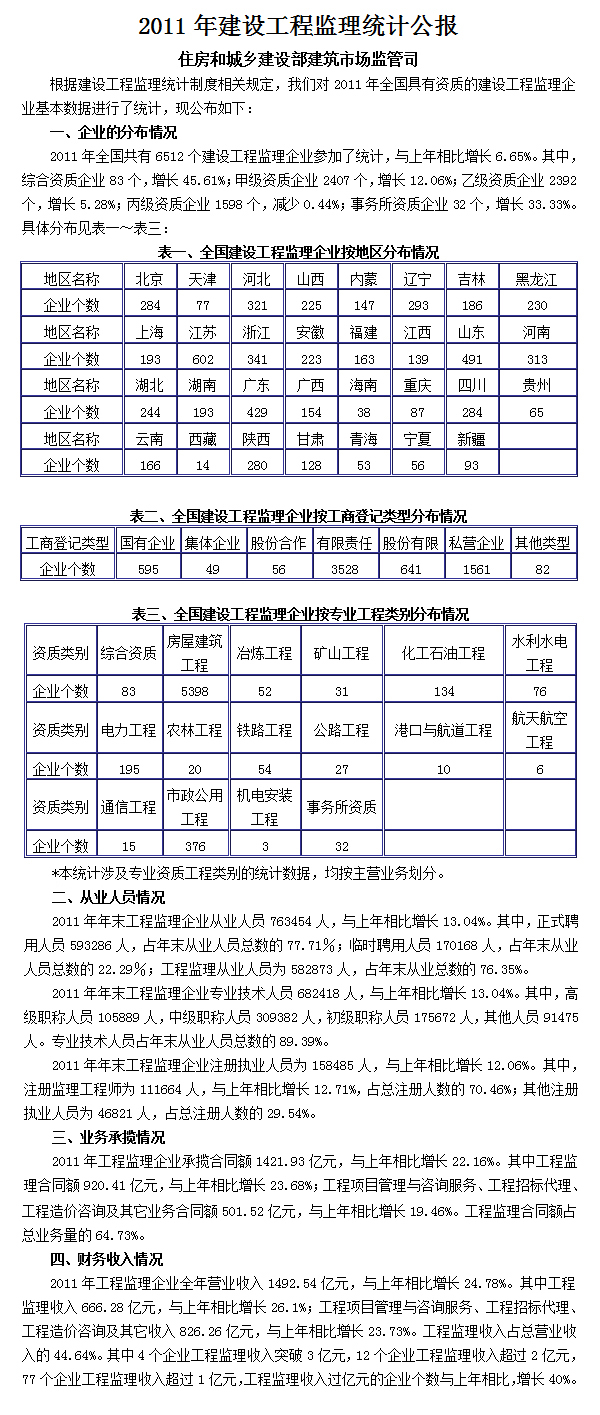 2011年建设工程监理统计公报